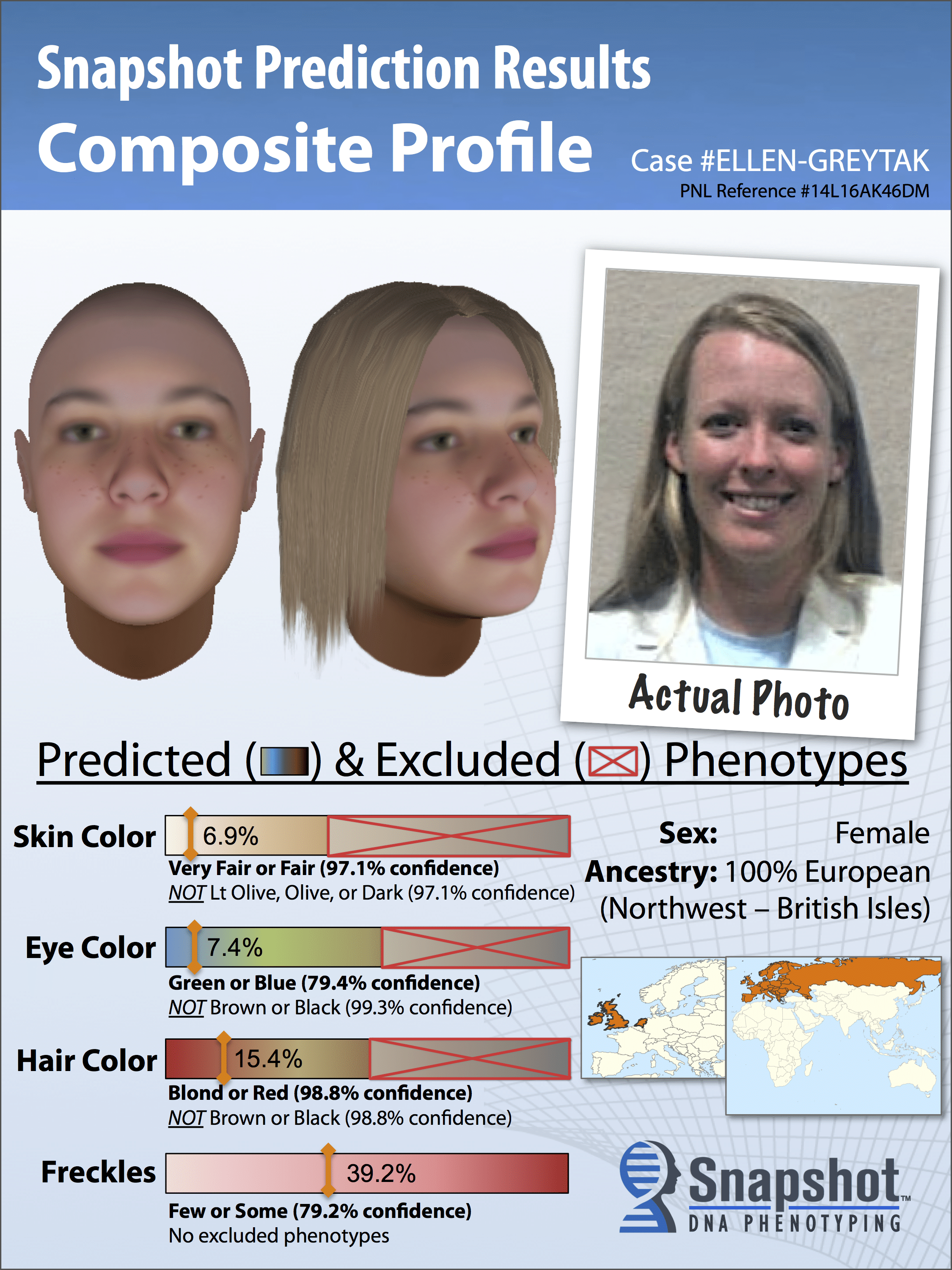 Just by using DNA and a complex algorithm, they can produce a 3-D facial map predicting facial features, including facial shape, freckles, genetic ancestry, and eye, skin, and hair color. It’s called forensic DNA phenotyping.